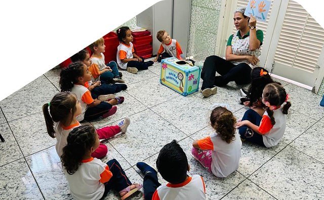 Espaço de interação e brincadeiras que desenvolvem a curiosidade, a socialização e as habilidades iniciais, estimulando a autonomia da criança.